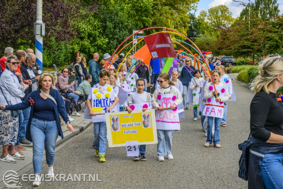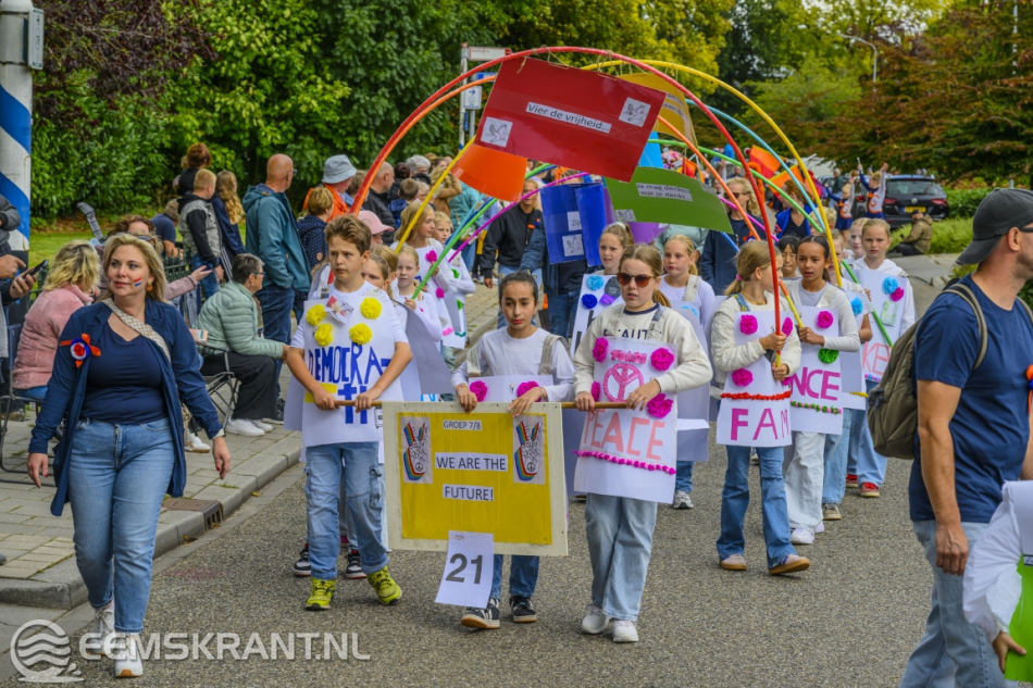 Appingedam – Vandaag werd in Appingedam de 126e editie van de Damsterdag gevierd, met als hoogtepunt het traditionele Papiercorso. Het thema van dit jaar was 80 jaar vrijheid. Rond twee uur stroomde het centrum vol met toeschouwers die uitkeken naar de kleurrijke optocht van corsowagens en loopgroepen. De deelnemers hadden weer prachtige creaties gemaakt. Ondanks de voorspelde regen bleef het tijdens de middag droog en vaak zelfs zonnig. Na de presentatie voor de jury in de Wijkstraat trok de stoet nog een ronde door het centrum.
