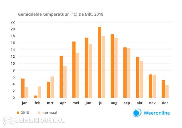 Daarna volgde een serie extreem warme maanden. Van april tot en met augustus lag de temperatuur ver boven normaal. April was de op twee na warmste in ruim 300 jaar, mei de warmste in ruim 300 jaar, en ook was het de warmste zomer sinds 1706! Ook het najaar verliep zacht en december sluit zich daarbij aan. De huidige koude dagen zullen daar weinig aan veranderen.