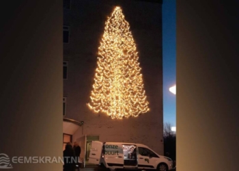 Lees meerDetailsDelfzijl - Dinsdagochtend is er op één van de Schuitenzand flats een verlicht kerstboomsilhouet ontstoken door ...