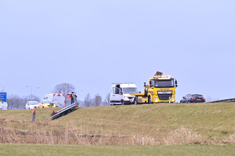 Om de aanhanger veilig te kunnen bergen, wordt de rijbaan in de richting van de Eemshaven afgesloten. De berging start zodra Rijkswaterstaat ter plaatse is.