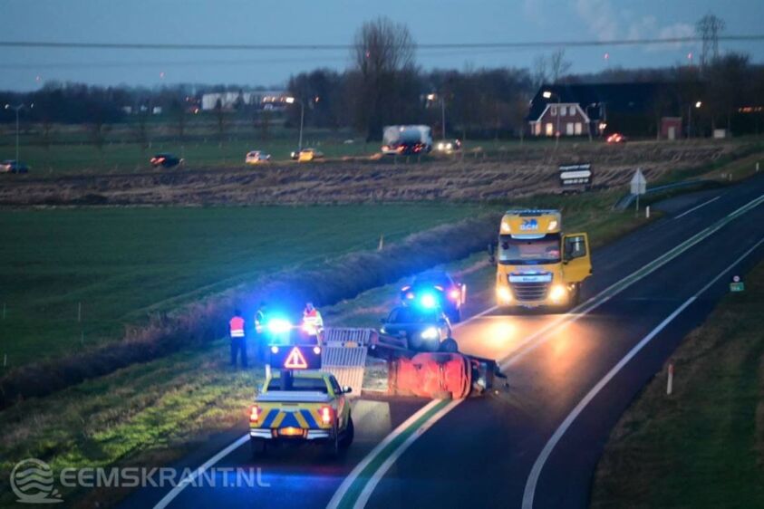 Homepage 112-nieuws Aanhanger met heftruck kantelt op de N33 bij Laskwerd