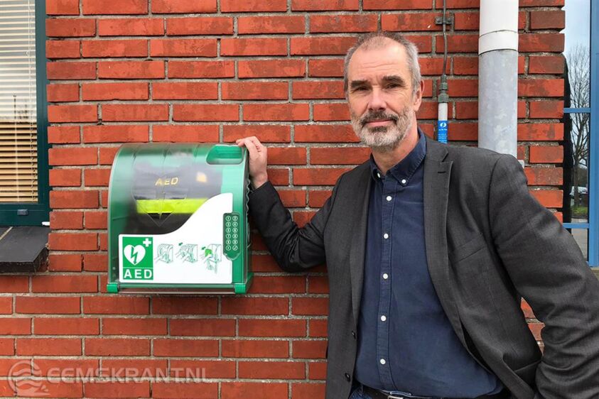 wethouder Hans Ronde bij AED naast gemeentehuis (002)