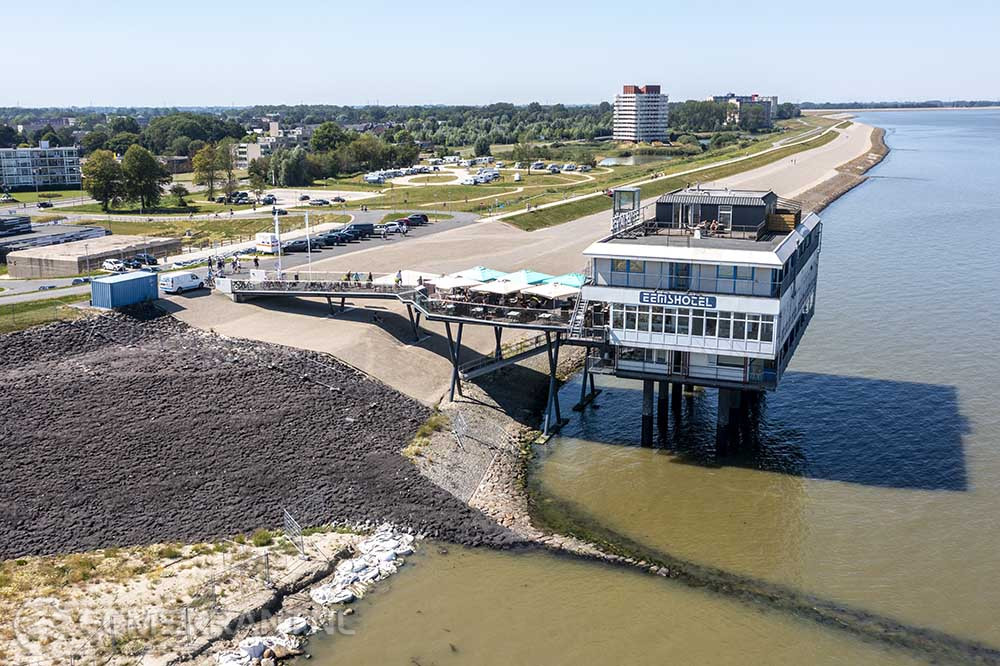 Het Eemshotel, het enige buitendijkse hotel van Nederland, werd in 1965 gebouwd en is sindsdien meerdere keren uitgebreid en gemoderniseerd. Zo werd in 1978 en 2009 een extra verdieping toegevoegd, en in 2019 is een nieuwe loopbrug met terras gerealiseerd in het kader van de dijkverhoging. Ook werd toen een lift geïnstalleerd.