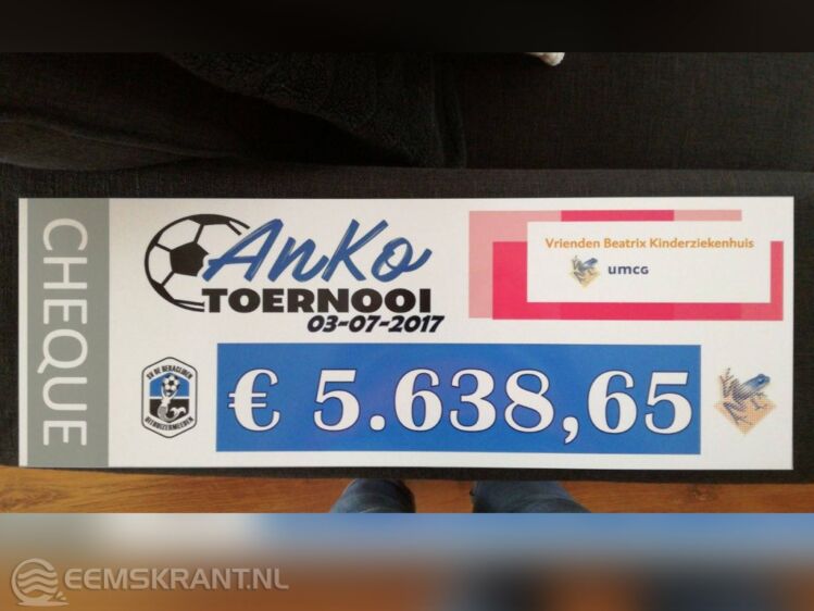 Uithuizermeeden – Aanstaande maandag om 16.00 uur zal de organisatie van het AnKo-toernooi een cheque ter waarde van € 5.638,65 overhandigen aan Barbara Baijens-Vrij, coördinator Fondsenwerving van de Vrienden Beatrix Kinderziekenhuis te Groningen.