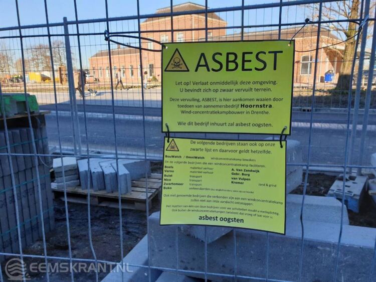 Eind januari werd ook asbest op het toekomstige windmolenpark N33 bij het Groningse Meeden aangetroffen, ook daar hingen dezelfde bordjes.