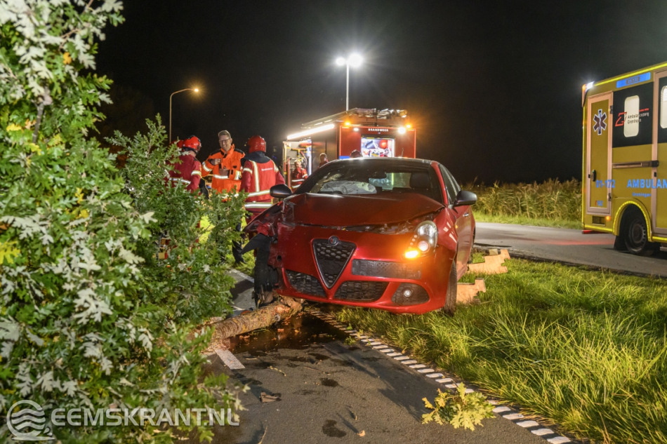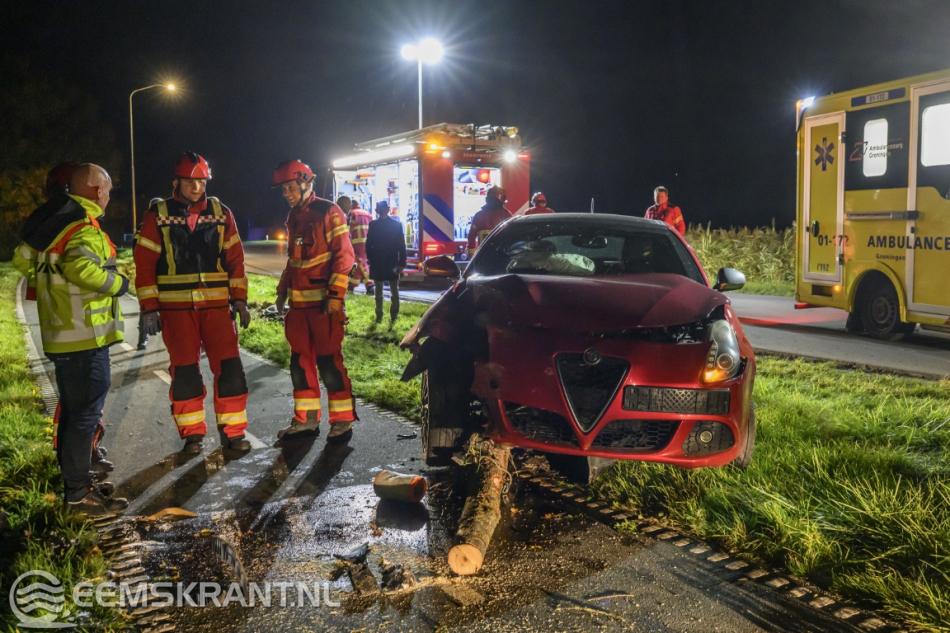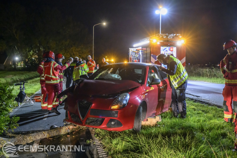 Loppersum – Op de Wijmersweg in Loppersum is vrijdagavond een auto van de weg geraakt en tegen een boom gebotst. De bestuurder verloor door nog onbekende oorzaak de controle over het voertuig, waarna de auto in de berm terechtkwam en een boom omver reed. Hulpdiensten, waaronder een ambulance, waren snel ter plaatse. De weg werd tijdelijk volledig afgesloten om de hulpverlening en berging mogelijk te maken.