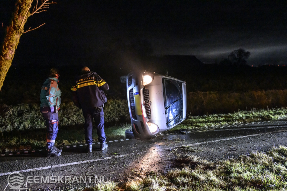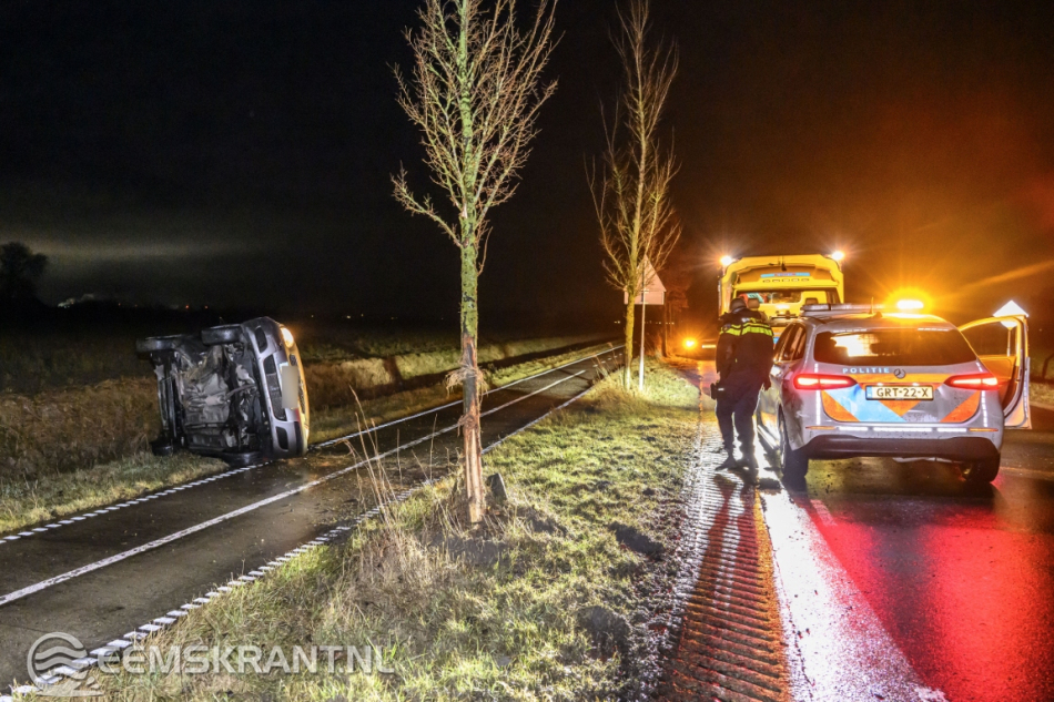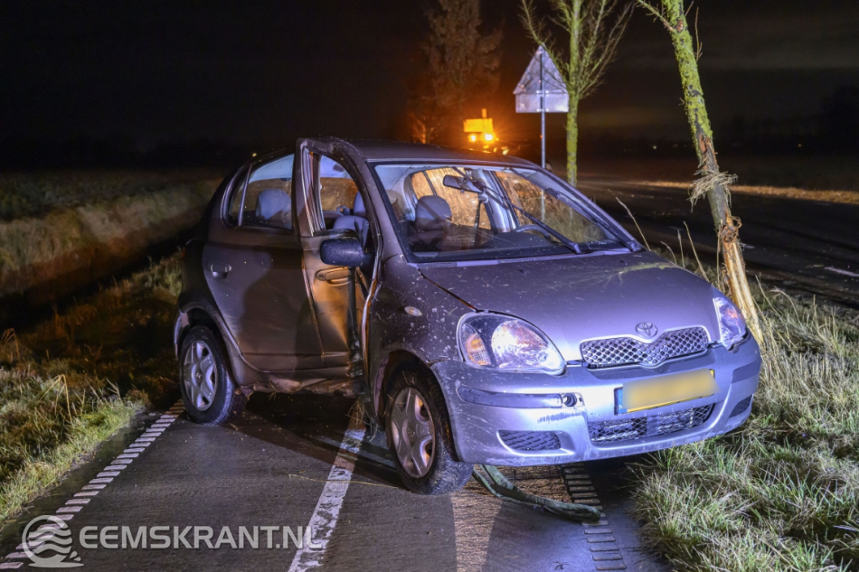Stedum – Op de Stedumerweg (N996) tussen Stedum en Loppersum is maandag aan het einde van de avond een automobilist in een bocht de controle over zijn voertuig verloren. De auto raakte in een slip, belandde naast de weg en botste tegen een boom. Vervolgens kwam het voertuig op de zijkant tot stilstand op het naastgelegen fietspad.