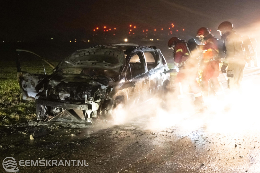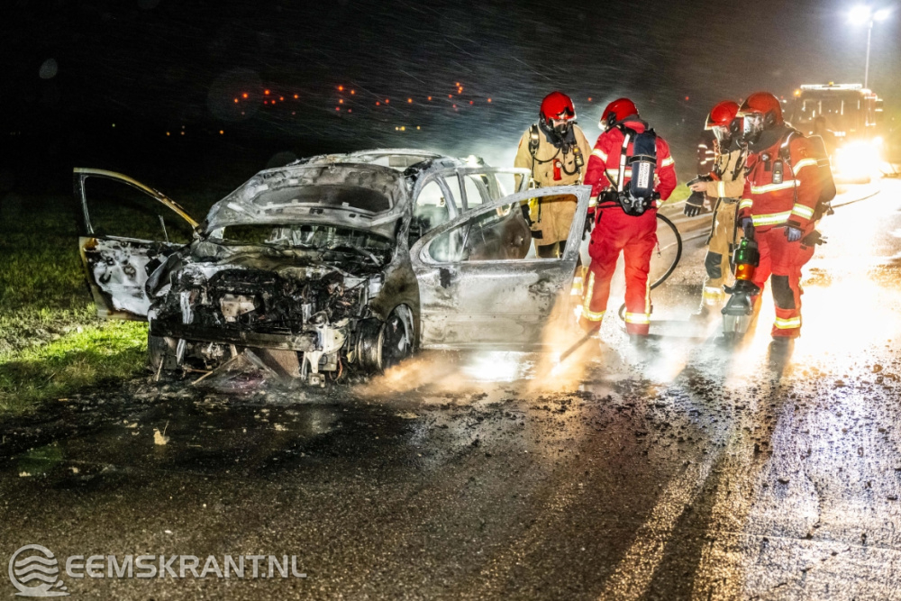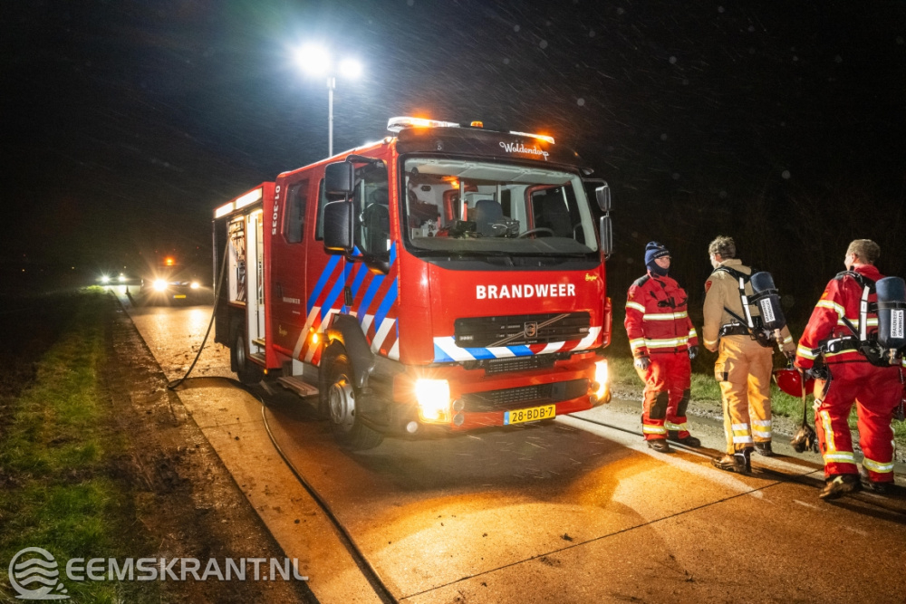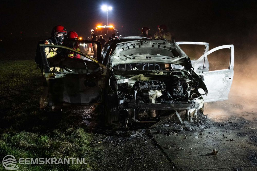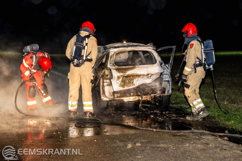 De brandweer van Woldendorp was snel ter plaatse, maar kon niet voorkomen dat de auto volledig uitbrandde. Een bergingsbedrijf heeft het uitgebrande wrak afgevoerd.