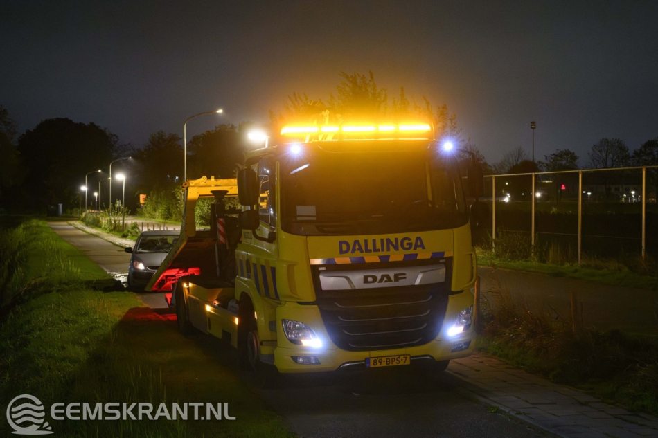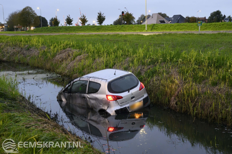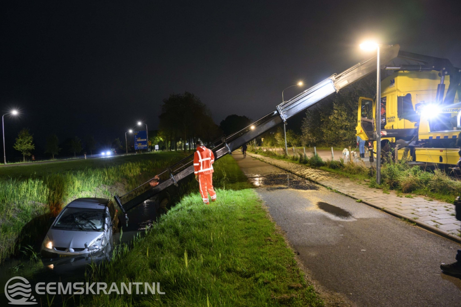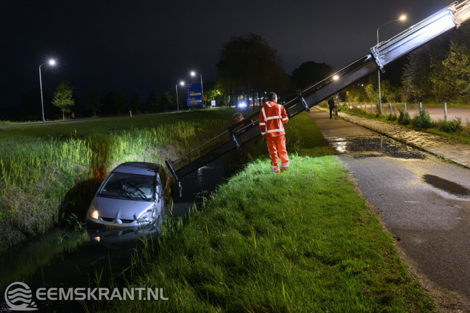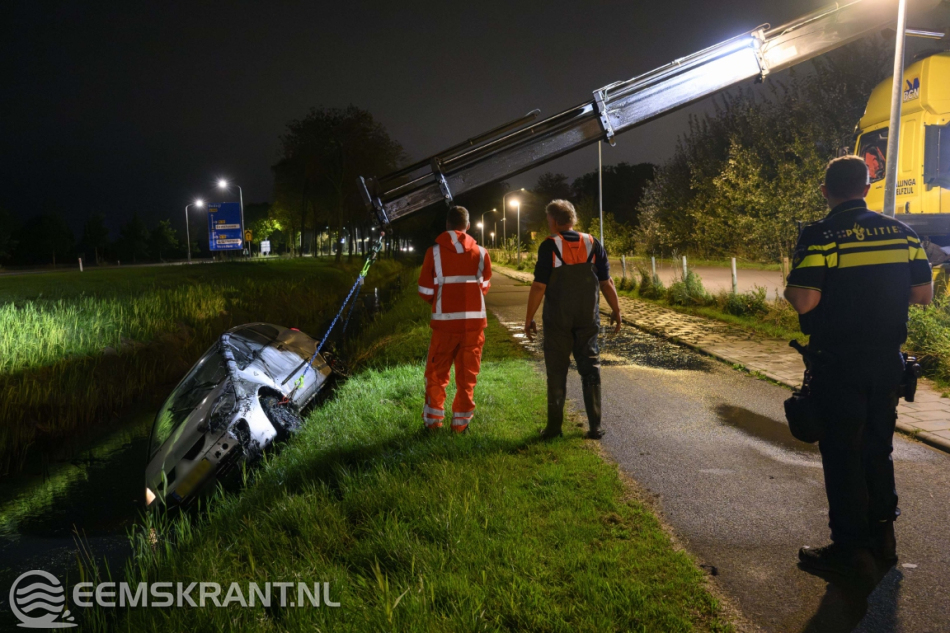 Een bergingsbedrijf heeft de auto uit de sloot gehaald. De oorzaak van het ongeval wordt door de politie onderzocht.