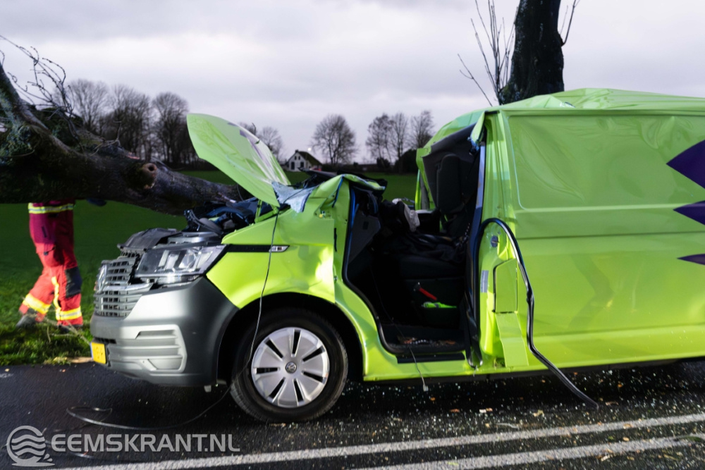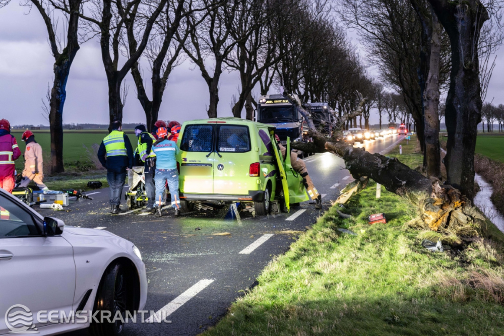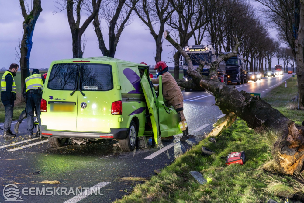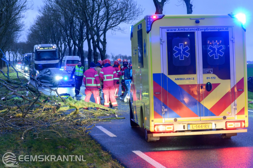 Nieuwolda – Op de N362 (Gereweg) bij Nieuwolda is maandagmiddag tijdens de storm een grote boom op een passerende auto gevallen. De automobilist raakte hierdoor bekneld in het voertuig. De brandweer heeft de automobilist uit zijn benarde positie bevrijd, waarna hij met onbekend letsel naar het ziekenhuis is overgebracht.