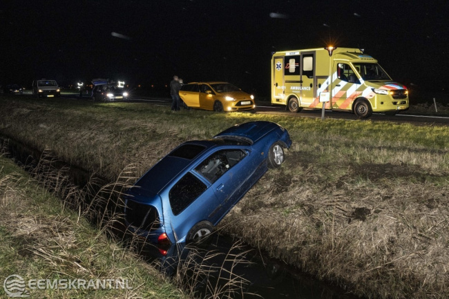 Meedhuizen – Een automobilist is nieuwjaarsdag met zijn auto in de sloot beland langs de N362 Holeweg tussen Meedhuizen en Appingedam. De bestuurder kwam uit de richting van Meedhuizen en raakte de controle over het voertuig kwijt, vervolgens schoot het voertuig de weg over vlak voor tegemoetkomend verkeer. Daarna reed het voertuig de berm in waarna het 500 meter verderop in de sloot belandde.