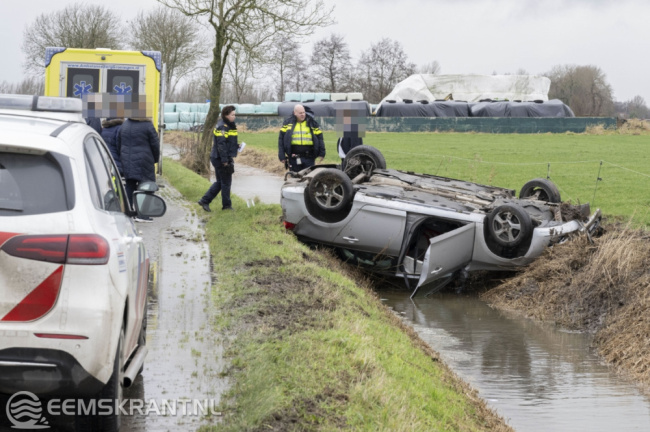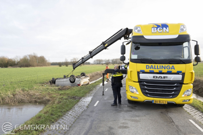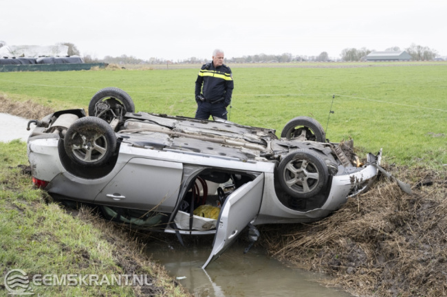 De bestuurder, die vanaf de N360 kwam en richting Eenum reed, raakte in de berm en belandde na een stuurcorrectie op de kop in de sloot. De automobilist kon op eigen kracht uit het voertuig komen. Ambulancepersoneel ter plaatse controleerde de automobilist, maar er werd geen letsel geconstateerd.