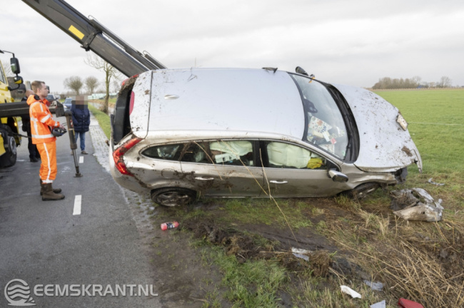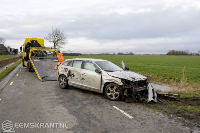 De politie heeft een registratie gemaakt van het ongeval. Een bergingsbedrijf heeft het zwaar beschadigde voertuig geborgen.