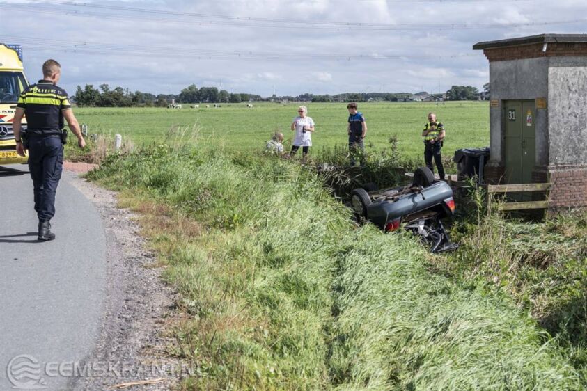 Appingedam – Een automobilist is maandagmiddag op de Stadsweg in Appingedam uit de bocht gevlogen en op de kop in een naastgelegen sloot tot stilstand gekomen.