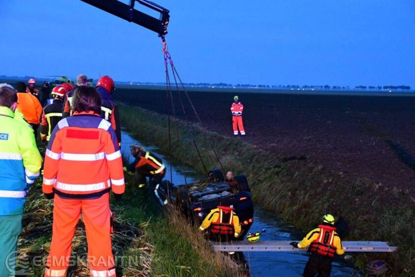Nieuwolda – Een bestuurder van een personenauto is woensdagmorgen door nog onbekende oorzaak de sloot in gereden op de Kerkelaan bij Nieuwolda. Het voertuig belandde vervolgens op de kop in de sloot.