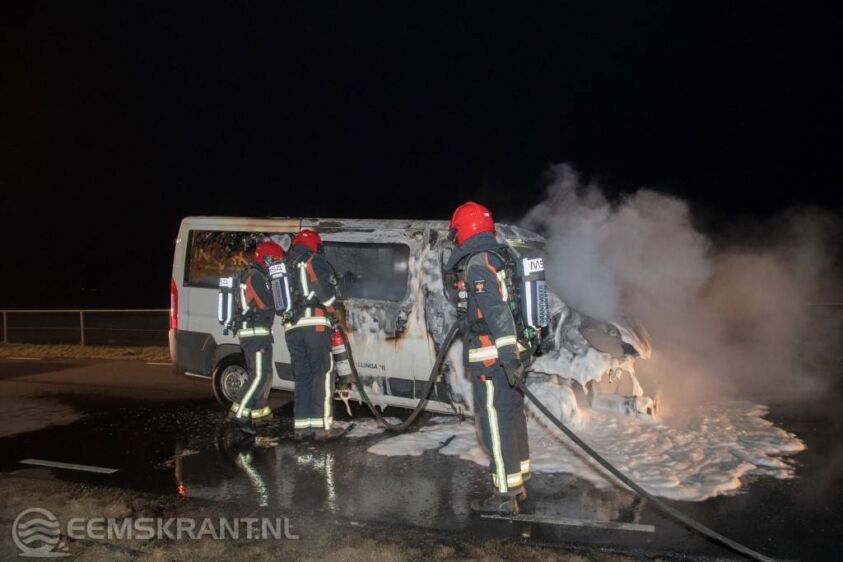 Eemshaven – De brandweerkorpsen van Bierum, Middelstum en Uithuizermeeden werden in de nacht van zaterdag op zondag opgeroepen voor een autobrand op de Kwelderweg in de Eemshaven. Het korps van Bierum was als eerste ter plaatse en trof ter hoogte van het gebouw Nijlicht een bestelbus aan die volledig in brand stond. Het korps had de brand snel onder controle en kregen bij de blussing assistentie van het korps uit Middelstum. Uithuizermeeden kon onverrichte zaken terugkeren naar de kazerne.
