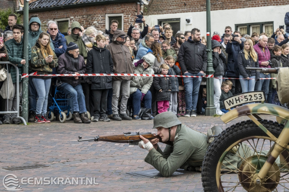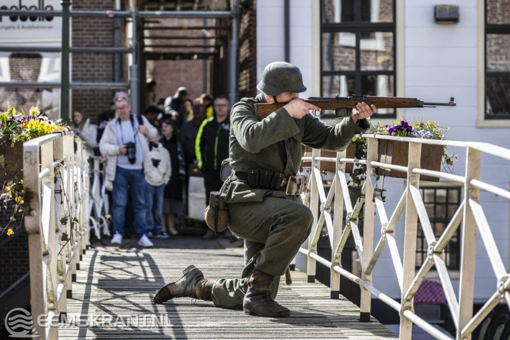 Appingedam – Dit weekend stond Appingedam in het teken van de bevrijding van de Tweede Wereldoorlog. Het centrum van de stad werd omgetoverd tot een waar strijdtoneel, waar Duitse en Canadese militairen de eindfase van de oorlog naspeelden. Honderden toeschouwers stonden rijen dik achter de hekken om de historische reenactment van dichtbij te beleven.
