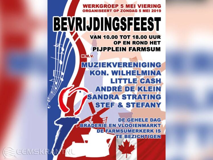 Farmsum – Op zondag 5 mei organiseert de Werkgroep 5 mei viering weer het jaarlijks Bevrijdingsfeest op en rond het Pijpplein in Farmsum. Zoals ieder jaar is er natuurlijk een braderie en rommelmarkt. Om 10:00 uur zal burgemeester Beukema de officiële opening verrichten door het ontsteken van de bevrijdingsvuur.