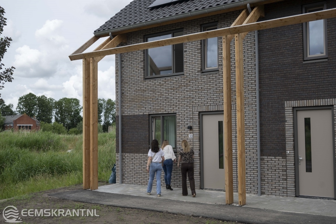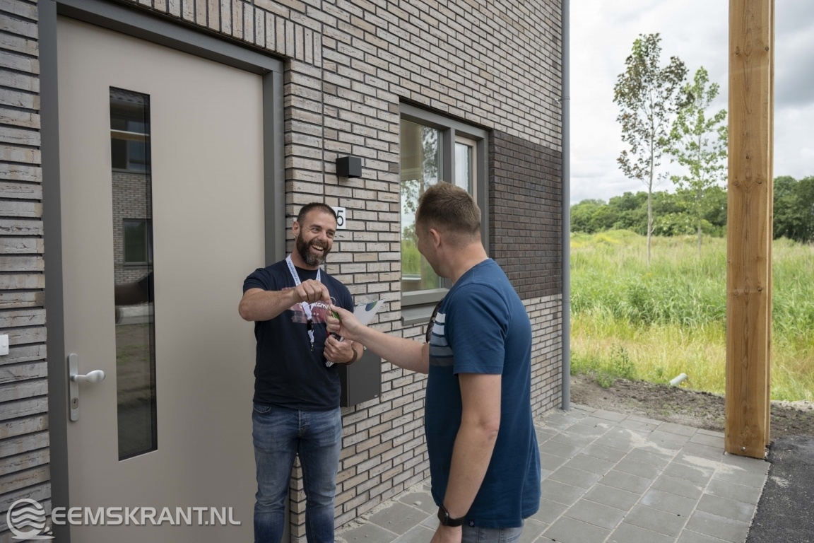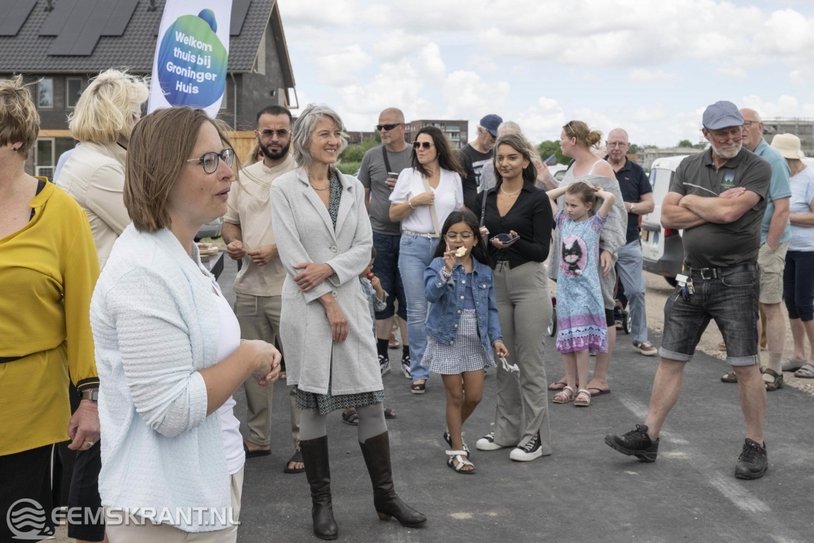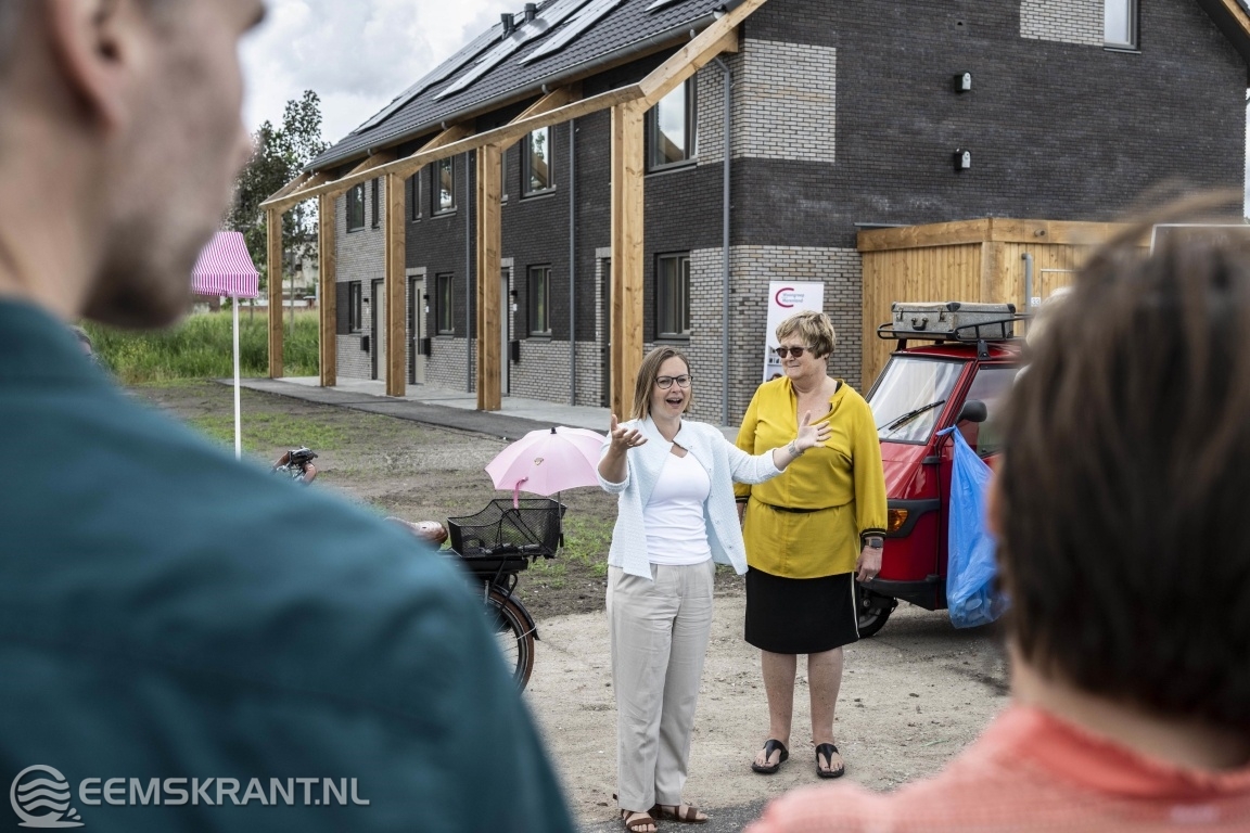 Appingedam – Op dinsdag 27 juni ontvingen de eerste huurders de sleutels van hun spiksplinternieuwe onderkomen op het Eendrachtterrein in Appingedam. Woonstichting Groninger Huis en Woongroep Marenland realiseerden hier 24 energiezuinige huurwoningen voor gezinnen. De bestuurders van de woningcorporaties Margriet Drijver en Laura Broekhuizen waren samen met wethouder Annalies Usmany-Dallinga van gemeente Eemsdelta aanwezig om huurders welkom te heten in hun nieuwe woning.