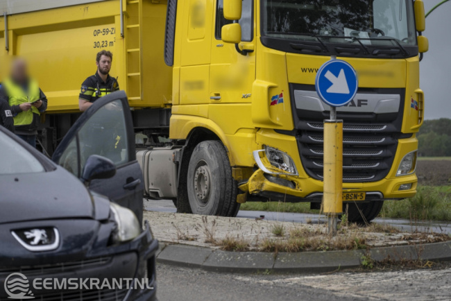 Godlinze – Op de kruising van de Provincialeweg met de Allersmaweg in Godlinze vond donderdagochtend een ongeval plaats tussen een vrachtwagen en een personenauto. Gelukkig bleef het bij veel blikschade en raakte alleen de automobilist licht gewond.