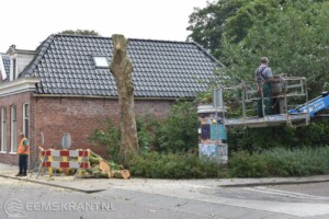 Appingedam – De boom aan de Koningsstraat in Appingedam die eerder voor veel ophef zorgde is vanochtend gekapt. De wortels van de boom waren in het riool gegroeid en dit veroorzaakt overlast voor meerdere omwonenden. De afvoer van het rioolwater van de aangesloten woningen stagneert doordat het riool is beschadigd. Bij een regenbui kan er zelfs geen gebruik worden gemaakt van het toilet.