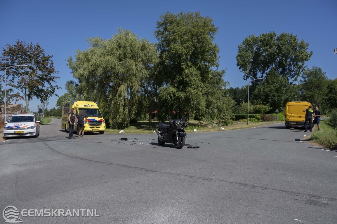 Wirdum – Een motorrijder is woensdag aan het eind van de ochtend op de kruising van de Eekwerderweg met de Rijksweg in botsing gekomen met een bedrijfswagen. De motorrijder kwam hierna ten val. De man is ter plaatse onderzocht door ambulancepersoneel, hij bleek geen noemenswaardig letsel te hebben opgelopen.