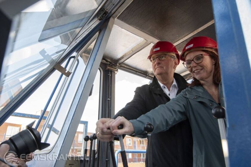 Delfzijl – Wethouder IJzebrand Rijzebol en bestuurder van Acantus Anita Tijsma hebben woensdagochtend aan de Spoorstraat in Delfzijl de starthandeling verricht voor de bouw van één van de eerste Nul-Op-de-Meter appartementencomplex en van Nederland. Dit gebeurde niet door zoals gebruikelijk het slaan van de eerste heipaal, maar met het in de grond drukken funderingspalen door een grote machine waar van er maar één van is in Nederland. Doordat de palen niet in de grond worden geslagen ontstaan er geen trillingen die nadelige gevolgen kunnen hebben voor de omgeving.