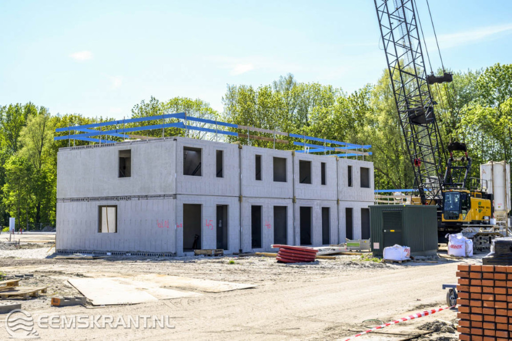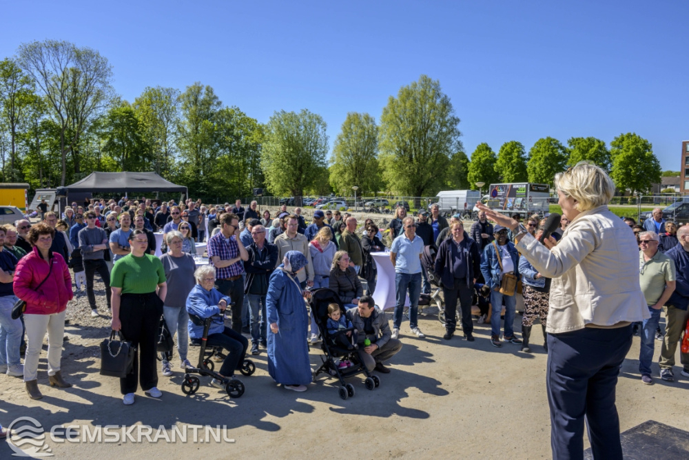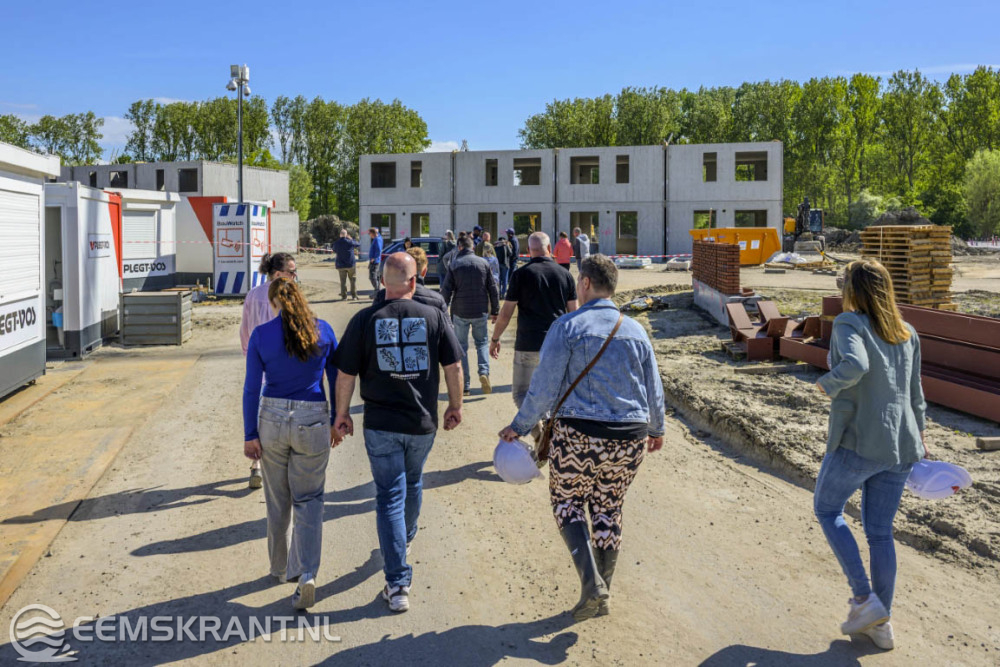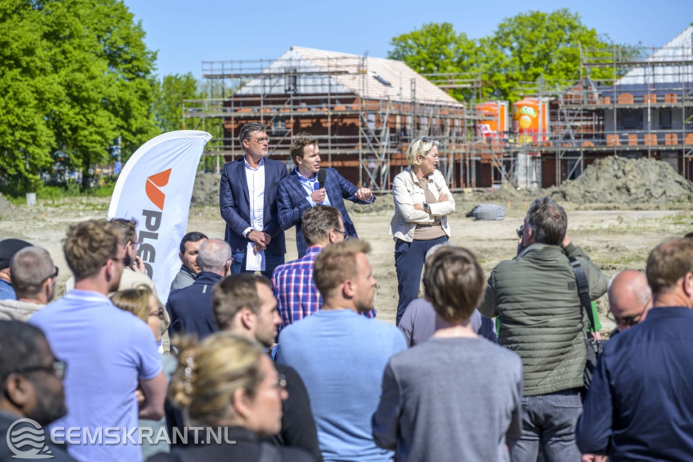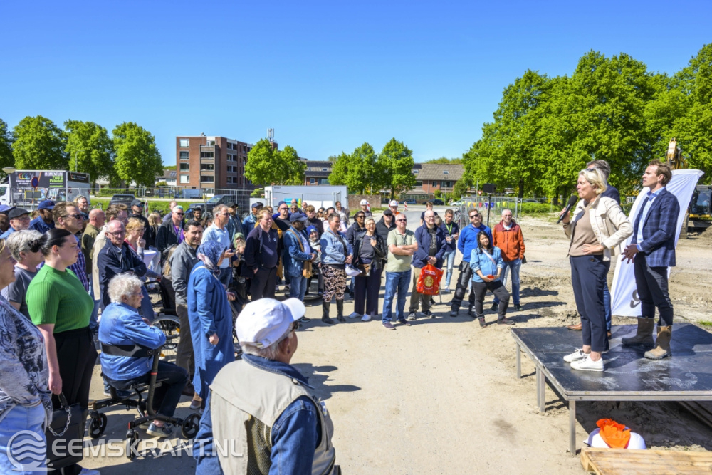 Delfzijl – Op de locatie waar eerst het Delfzichtziekenhuis stond, worden 45 huurwoningen en 90 koopwoningen gebouwd. Samen met bewoners vierden bouwbedrijf Plegt-Vos, gemeente Eemsdelta en woningcorporatie Acantus op vrijdag 9 mei dat de bouw van de woningen in volle gang is.