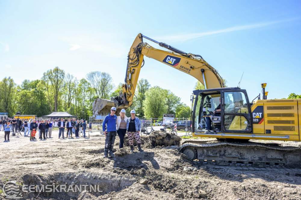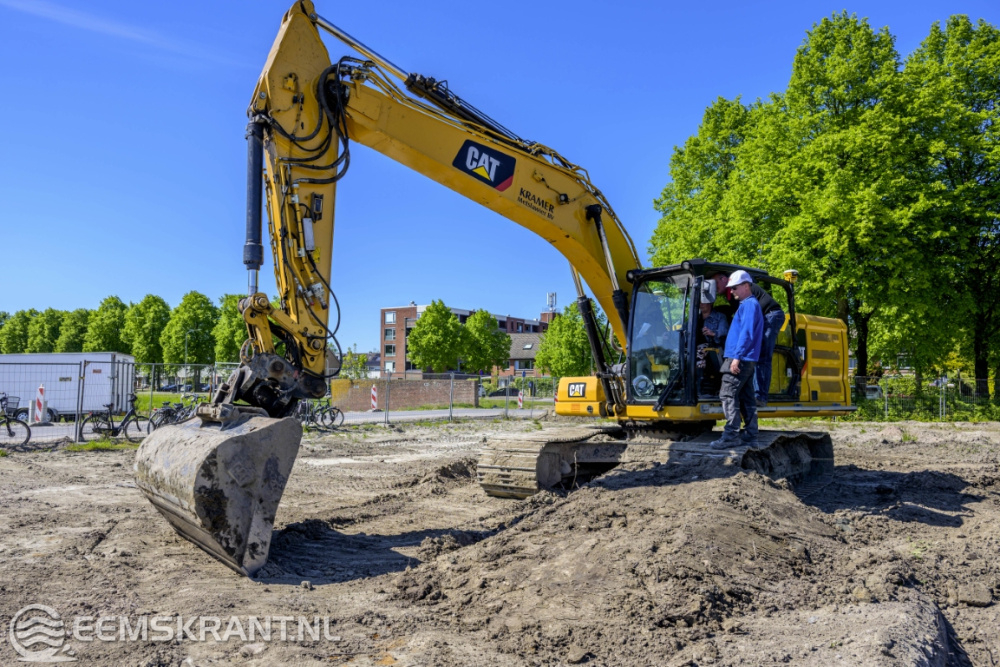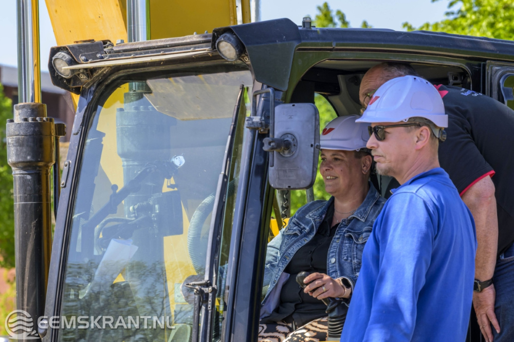 De medewerkers van Plegt-Vos kregen vrijdag hulp op de bouwplaats. Twee toekomstige bewoners hielpen even een handje mee in de graafmachine.
