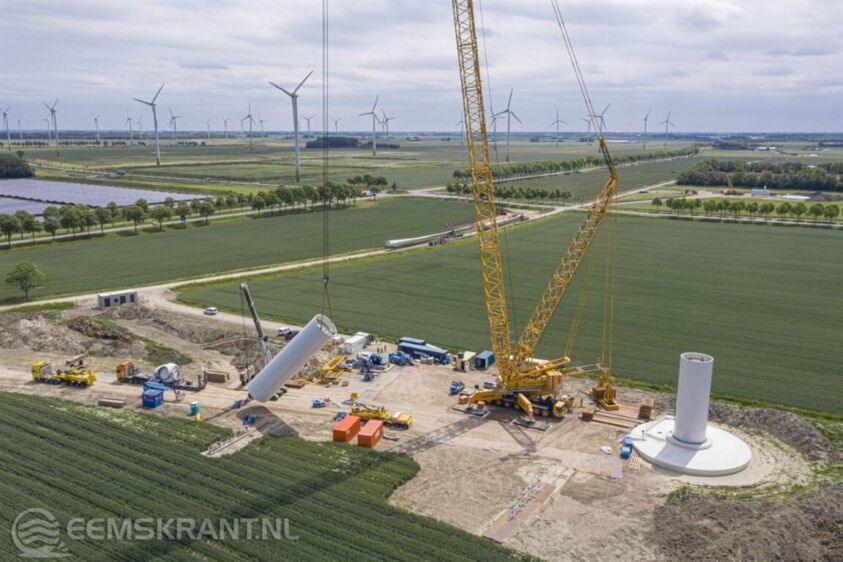 Farmsum – De bouw van het nieuwe windpark Geefsweer is begonnen. De eerste onderdelen van de windturbines werden maandagavond per vrachtwagen vanuit de Eemshaven naar Delfzijl gebracht.