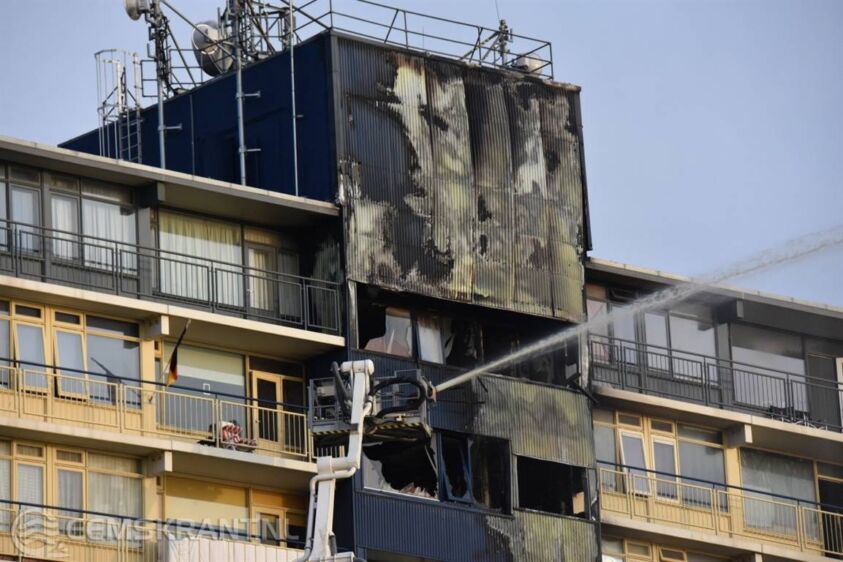 Uitslaande woningbrand op twaalfde verdieping van Dijkzichtflat