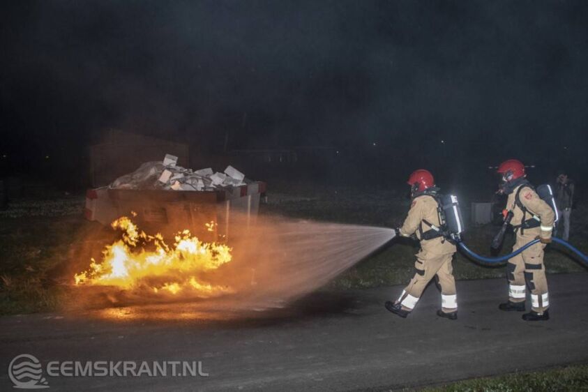 De dixi was op dat moment al volledig afgebrand. De bouwcontainer ernaast werd behoorlijk aangestraald maar vatte geen vlam. De brandweer wist de brand met één straal hogedruk te blussen.