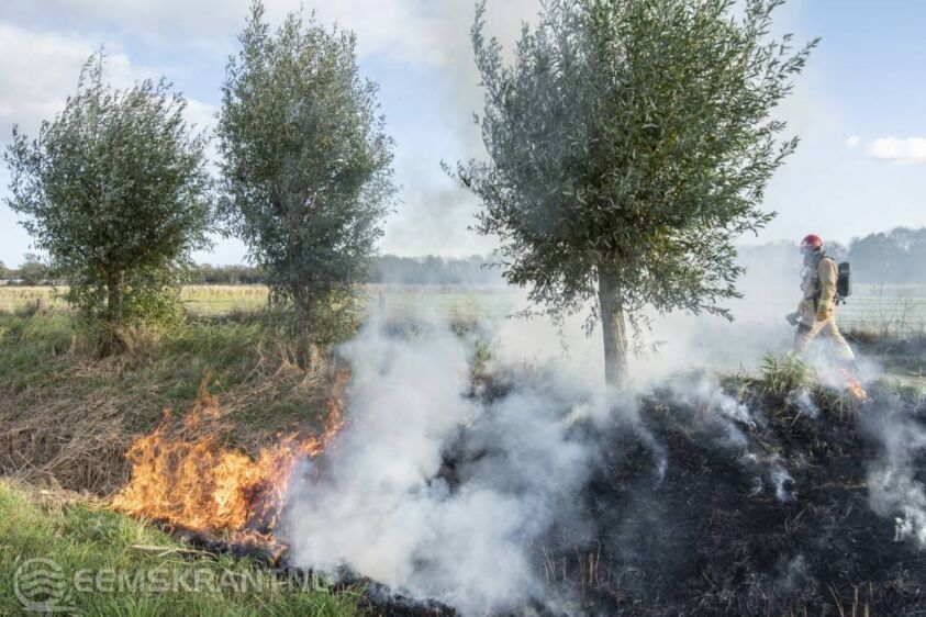 Delfzijl – Bij het Biessumerbos in Delfzijl heeft vanmiddag een buitenbrand gewoed. Een slootwal stond over enkele tientallen meters in brand. De brandweer wist de brand met twee stralen hogedruk te blussen. De brand zorgde voor behoorlijke rookontwikkeling welke richting de N360 trok.