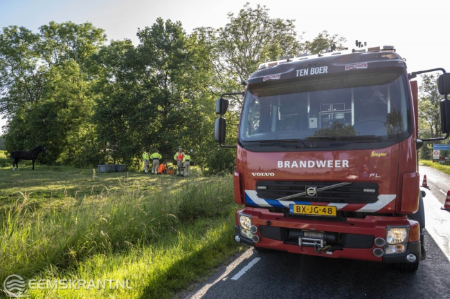 Garrelsweer – De brandweer is dinsdagochtend enige tijd bezig geweest met een redden van een te water geraakt paard aan de Rijksweg in Garrelsweer. Een toevallig passerende fietsster zag het dier in de sloot liggen en schakelde de brandweer in. De brandweer van Ten Boer was als eerste ter plaatse en heeft een poging gedaan het paard met vereende kracht uit de sloot te trekken, maar dit bleek onbegonnen werk.