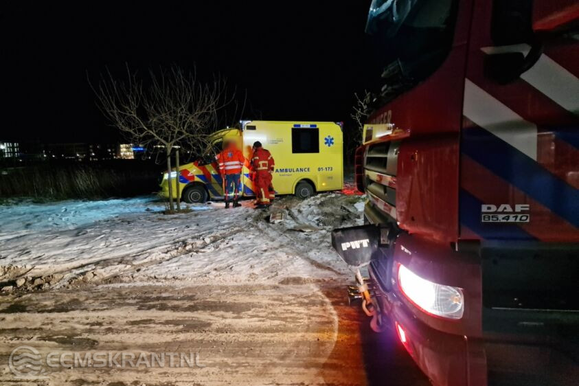 Delfzijl – Afgelopen nacht heeft de brandweer de ambulancedienst bijgestaan nadat zij in een lastige situatie terechtkwamen. De ambulancebroeders waren onderweg naar een melding op de Eemsweg, maar bij aankomst bleek de Finsestraat afgesloten vanwege bouwwerkzaamheden op de Noorsestraat. Om snel het juiste adres te bereiken, probeerde de chauffeur een alternatieve route over het gras, in de hoop dat de ondergrond nog bevroren was. Hoewel dit gedeeltelijk lukte, kwam de ambulance halverwege het veld vast te zitten.