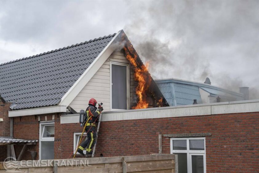 Brandweer weet brand op dak van woning aan de Oude Schans in Delfzijl snel te blussen