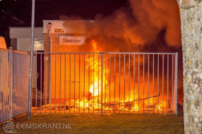 Delfzijl – De brandweer van Delfzijl is op oudejaarsavond rond kwart over negen uitgerukt voor een buitenbrand aan de Europaweg in Delfzijl. Bij aankomst bleek tegen het pand van de voedselbank brand te woedden in een stapel pallets en een aanhanger. Door snel optreden kon worden voorkomen dat de brand oversloeg op het pand. Naast de brandende pallets stond ook een container voor oude kleren in de brand. Nadat beide branden waren geblust kon de brandweer terugkeren naar de kazerne.