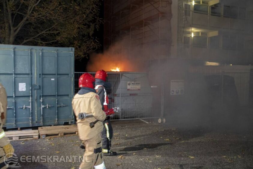 flat gaande, in een afvalcontainer op het bouwterrein was rond acht uur brand gesticht.