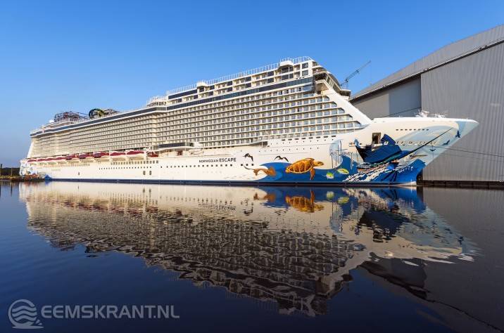 Papenburg / Eemshaven – De Norwegian Escape, het nieuwste cruiseschip gebouwd door de Meyer Werft Meyerwerf in Papenburg zal naar alle waarschijnlijkheid pas op vrijdag 18 september vertrekken richting de Eemshaven. Eerder deze week werd het schip woensdagmiddag(vandaag) in de Eemshaven verwacht maar de weersomstandigheden laten het niet toe het schip over de Eems te varen.