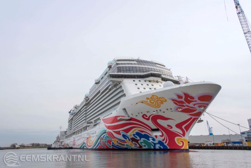 Eemshaven – Het jongste en nagenoeg grootste nieuwbouw cruiseschip van de Meyer Werft (Papenburg), de Norwegian Joy, doet naar verwachting vanavond de Eemshaven aan.