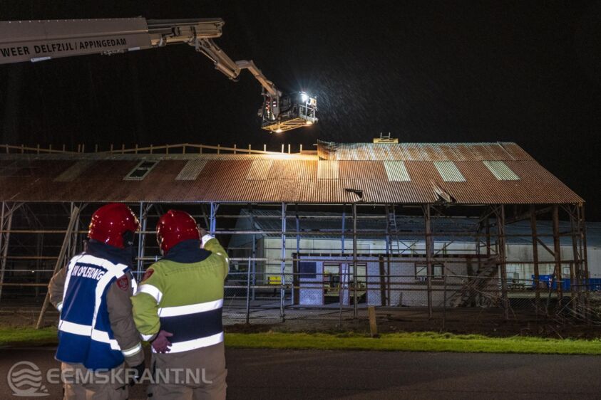 Farmsum – De brandweer is zaterdagavond enige tijd bezig geweest met het verwijderen van een aantal dakplaten van een loods aan de Koperweg in Farmsum. Door de storm waren delen van de loods, die wordt gesloopt, losgekomen en op de weg beland.