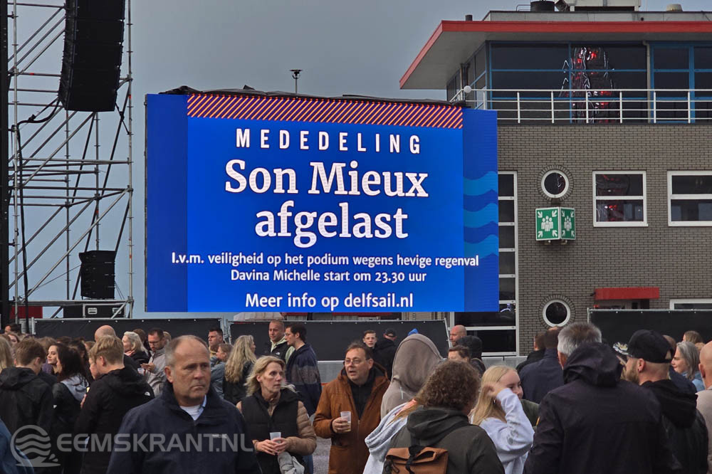 Voorzitter Gerard Beukema van DelfSail geeft aan dat het een lastig besluit was om te nemen: ,,Het bestuur betreurt het dat het optreden van Son Mieux niet door kon gaan vanwege de weersomstandigheden en de veiligheid. We begrijpen de teleurstelling bij het publiek dat stond te wachten. We bedanken alle mensen die er alles aan gedaan hebben om het programma te vervolgen.”