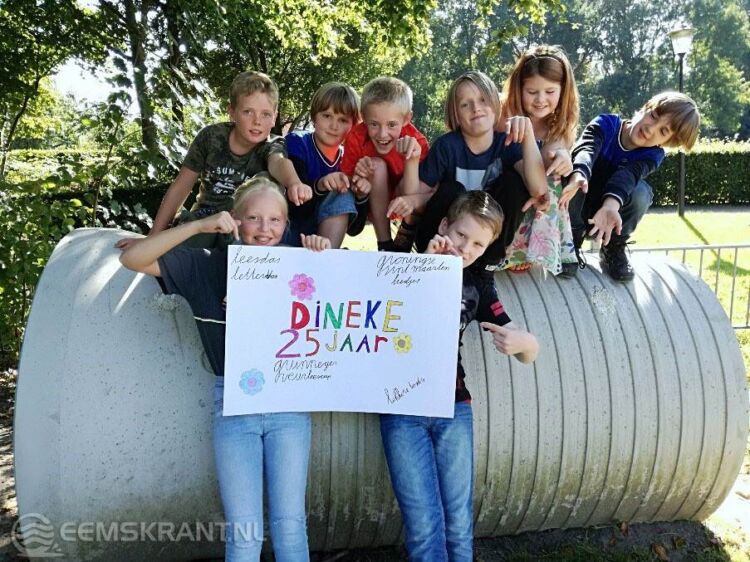 Westeremden – Dineke Huisinga is 25 jaar actief als vrijwilliger van de Abt Emoschool in Westeremden. Het begon in 1995 een dalend leerlingenaantal op de Mr. Kranenborghschool in Garsthuizen en op de Abt Emoschool in Westeremden. Het probleem was dat het gemeentebestuur door de Haagse wetgeving maatregelingen moest nemen. Er werd gestart met het samenvoegen van de kleuterscholen in Stedum, Garsthuizen en Westeremden. De kleuterschool was in een lokaal in Westeremden.