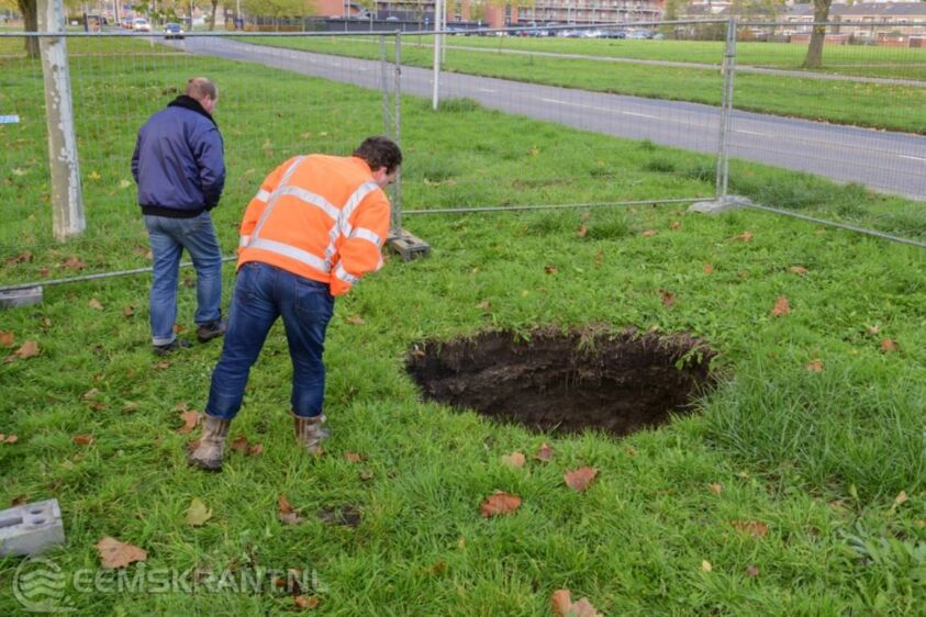 Delfzijl – Een kapotte buis van het hoofdriool in de gemeente Delfzijl heeft zondagmiddag voor een sinkhole van ongeveer twee meter breed en 3 meter diep gezorgd. De buis, die parallel loopt aan de Hogelandsterweg, is ter hoogte van het voormalige Delfzicht ziekenhuis kapot gegaan.