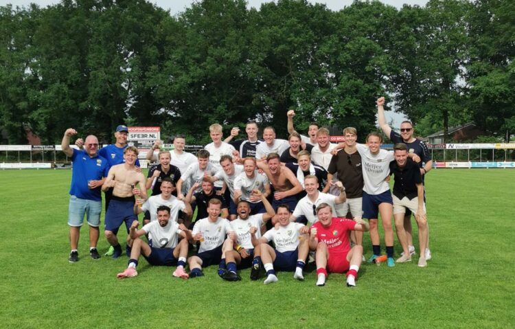 Gieten – DVC Appingedam is er in geslaagd om te promoveren naar de reserve 1e klasse. Op zaterdag 14 juni werd er in Gieten – op neutraal terrein- gespeeld tegen vv Noordscheschut 2. Voor DVC ging het om promotie, Noordscheschut wilde graag blijven uitkomen in de 1e klasse. In de warmte werd er in de reguliere speeltijd maar liefst 6x gescoord. De eindstand was dan ook 3-3 waardoor er een verlenging noodzakelijk was.