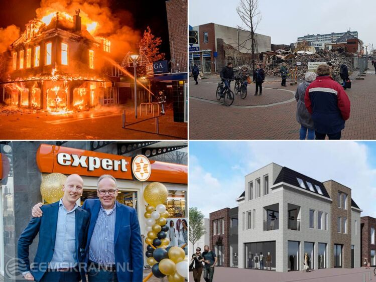 Begin oktober, tien maanden na de brand, werden de plannen voor nieuwbouw op de locatie bekend. Het nieuwe pand is ontworpen door Architectenbureau Jongsma/Dijkhuis uit Delfzijl. Het pand past in het straatbeeld van Delfzijl. Van buiten lijkt het alsof het gebouw bestaat uit drie smalle panden, maar achter de voordeur huizen straks drie ruime winkels, dit is een winkelpand minder dan voorheen.