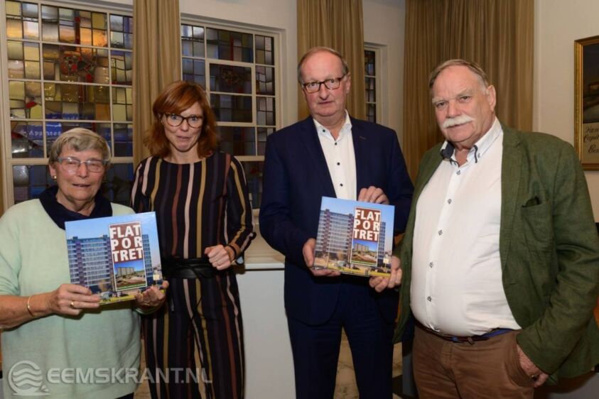 Delfzijl – Op dinsdag 29 oktober is in de raadzaal van het gemeentehuis in Delfzijl het eerste exemplaar van het boek ‘Flatportret’ overhandigd aan de gemeenteraad van de gemeente Delfzijl in de persoon van de heer A. Heuvelman, en aan mevrouw C.G. Heijn-Hooft als oud-bewoner van de flat. Zij ontvingen het boek uit handen van mevrouw A. Tijsma (directeur bestuurder Acantus) en wethouder Rijzebol.