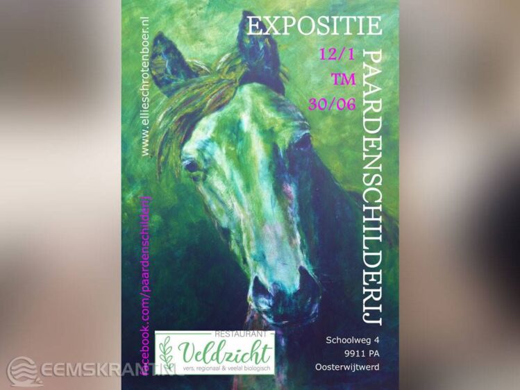Oosterwijtwerd – In Restaurant Veldzicht in Oosterwijtwerd zijn vanaf 12 januari Paardenschilderijen van Ellie Schrotenboer te zien. De expositie is tijdens openingstijden te bezichtigen tot en met 30 juni.