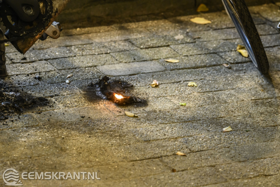 De brandweer heeft de smeulende resten met een bak water nageblust om er zeker van te zijn dat het vuur volledig was gedoofd. Volgens de eerste indrukken is de brand hoogstwaarschijnlijk aangestoken.