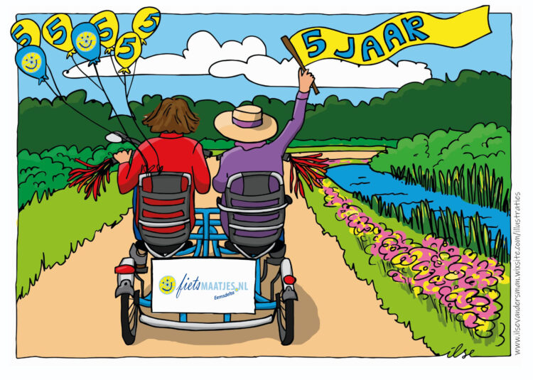 Eemsdelta – Fietsmaatjes Eemsdelta bestaat vijf jaar en dat wordt dit jaar op meerdere momenten feestelijk gevierd. De stichting, die gasten en vrijwilligers samenbrengt voor ontspannen fietstochten op de duofiets, staat stil bij dit jubileum met een feestje tijdens NL DOET, een grote toertocht in april én een wisseling van de voorzittershamer.